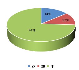 花类品规中,价格上涨的品规占14%;降价品规占33%;价格持平的品规占53%。