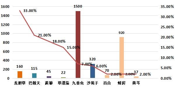 龙胆草:东北龙胆草正值产新,产地新货产出量少,新货价格持续上涨,目前市场经营商多观望对待,现统货售价145-150元,大统货160元。