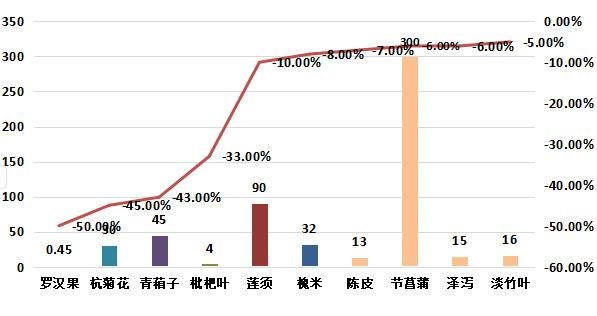 蒺藜:产地今年降雨量大导致新货产出量少,商家关注力度较强,行情进一步上涨,现色青货价格在45元左右;稍次货40元;选装货要价50元上下,短期内行情仍处震荡中。