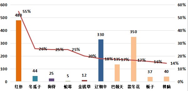 辽细辛今年新货产量依然不大,行情处于坚挺上行的趋势。锁阳在人为因素的参与下行情持续上涨。鱼腥草进入销售用季货源持续走畅。广金钱草受产新影响价格小幅回落。夏枯球人气低落,商家多以积极售货态度为主。半枝莲走迟、价疲。广藿香产地降雨量大,引起多商议论,该品种在地面积不小且库存有量。淫羊藿含量合格货依然紧俏,价格坚挺。肉苁蓉进入产新期,行情有商关注,后期行情仍处震荡中。